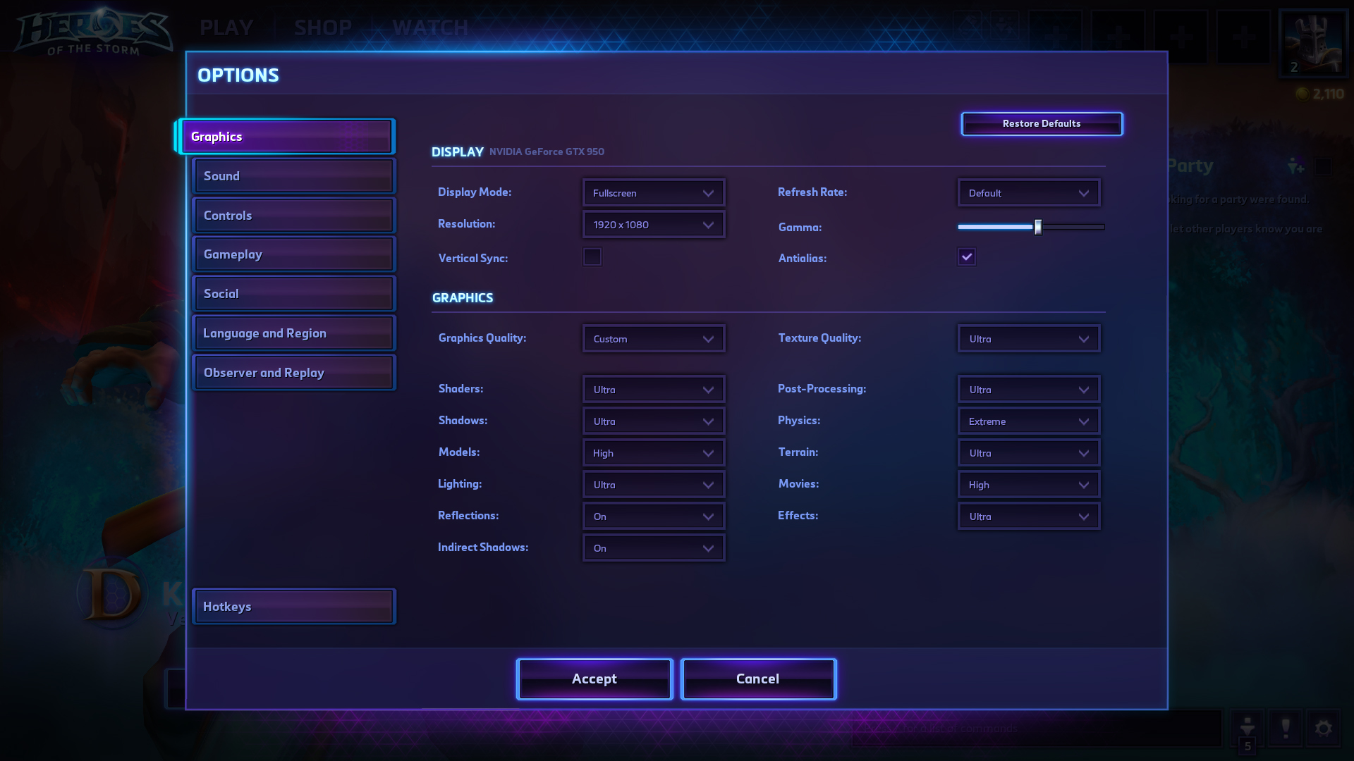 Blizzard's Heroes of the Storm sports the most demanding recommendation for a GPU of the three games tested. While a GeForce 7500 GT/Radeon HD 2600 XT will suffice as the bare minimum, Blizzard lists a GTX 650/Radeon HD 7790 or better as the recommended graphics card. The game offers settings up to extreme in graphical quality, which--for testing purposes--I opted for.