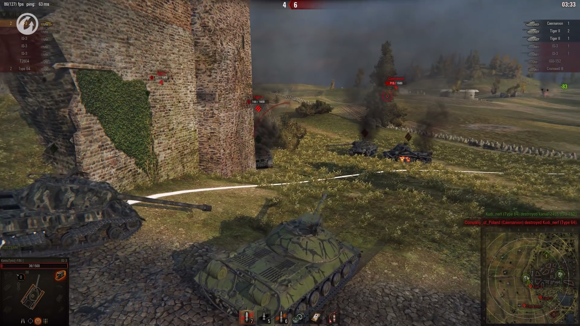 While watching all these competitive matches take place live, it dawned on me that World of Tanks is truly a game that benefits a team that works together. The gameplay formula minimized “hero” moments, where a single player could singlehandedly secure victory for his team. Players worked strategically as a cohesive unit. Because tanks weren't able to travel over the large maps quickly without overexposing themselves, positioning was crucial to a team's strategy. Despite the game's steady pace, matches could still be quick to sway in either team's favor. This resulted in an emphasis on team tactics over individual skill. Because the spectator camera provided an overall view of what was happening on the battlefield, it was easy to keep up with the action, even with 14 participants playing at once.